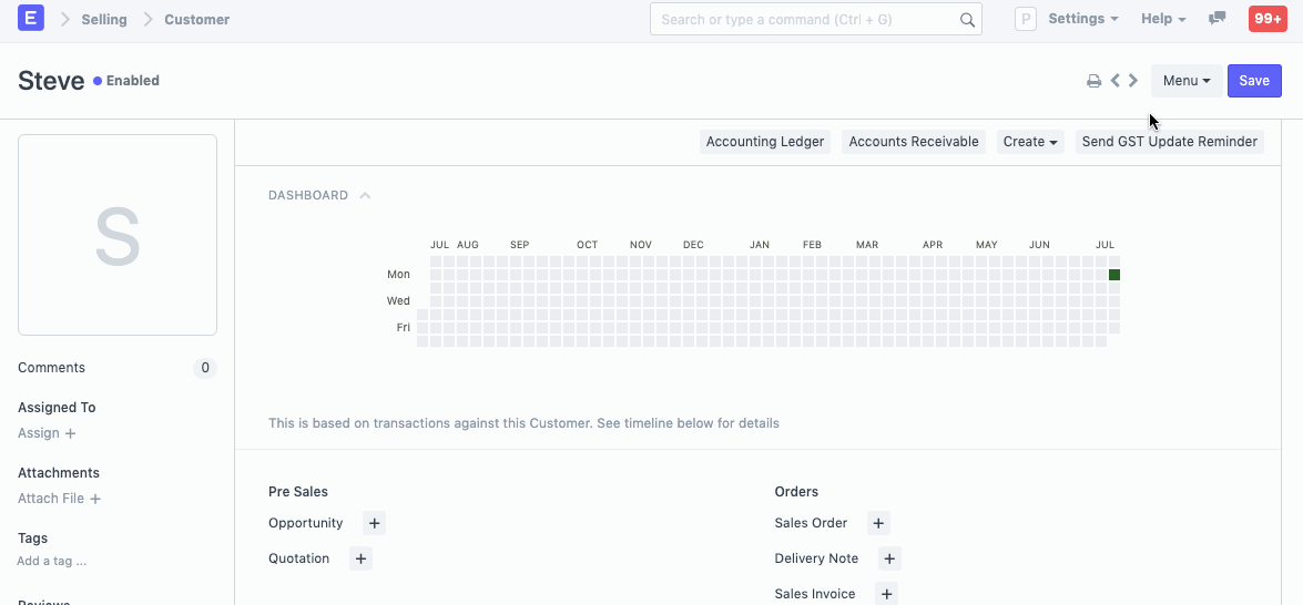 También puede fusionar documentos renombrándolos. Por ejemplo, si tiene un cliente llamado Steve y un duplicado llamado Steve1, puede ir a cualquiera de ellos, hacer clic en Menú > Renombrar y marcar la casilla «Fusionar con existente». Esto fusionará todos los documentos vinculados de ambos. Para obtener más información, visite esta página.