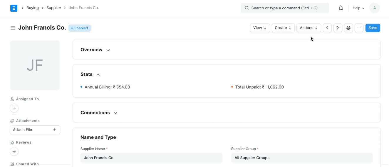 La contabilidad de partes comunes en EspoCRM implica la contabilidad de transacciones inusuales, como la creación de una factura de venta contra un proveedor principal.
