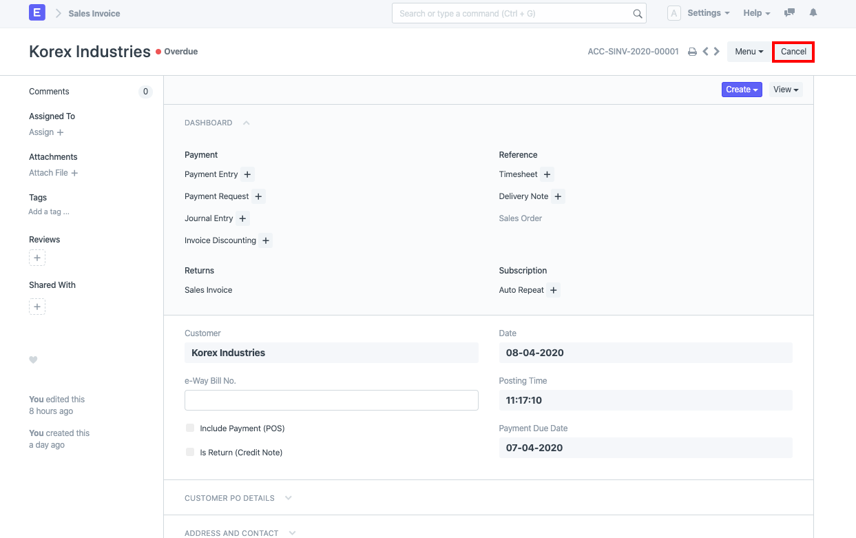 Ejemplo: Si ha creado una nota de entrega y una factura de venta para un pedido de venta y necesita modificarlas, primero debe cancelarlas. A continuación, modifique el pedido de venta, vuelva a guardarlo y envíelo.