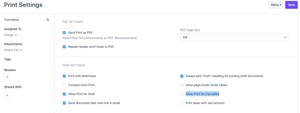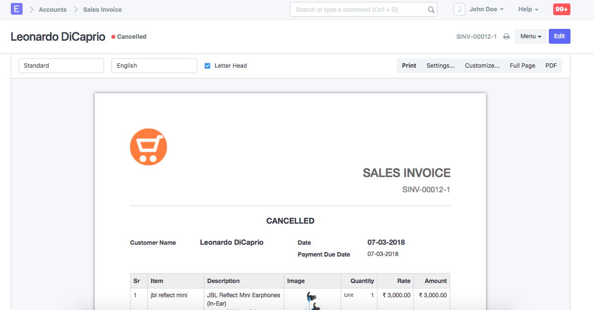 Imprimir factura cancelada ¿Cómo imprimir una factura cancelada?En la configuración de impresión , hay una casilla que permite imprimir facturas canceladas. Reinicie EspoCRM para que la configuración refleje lo siguiente: