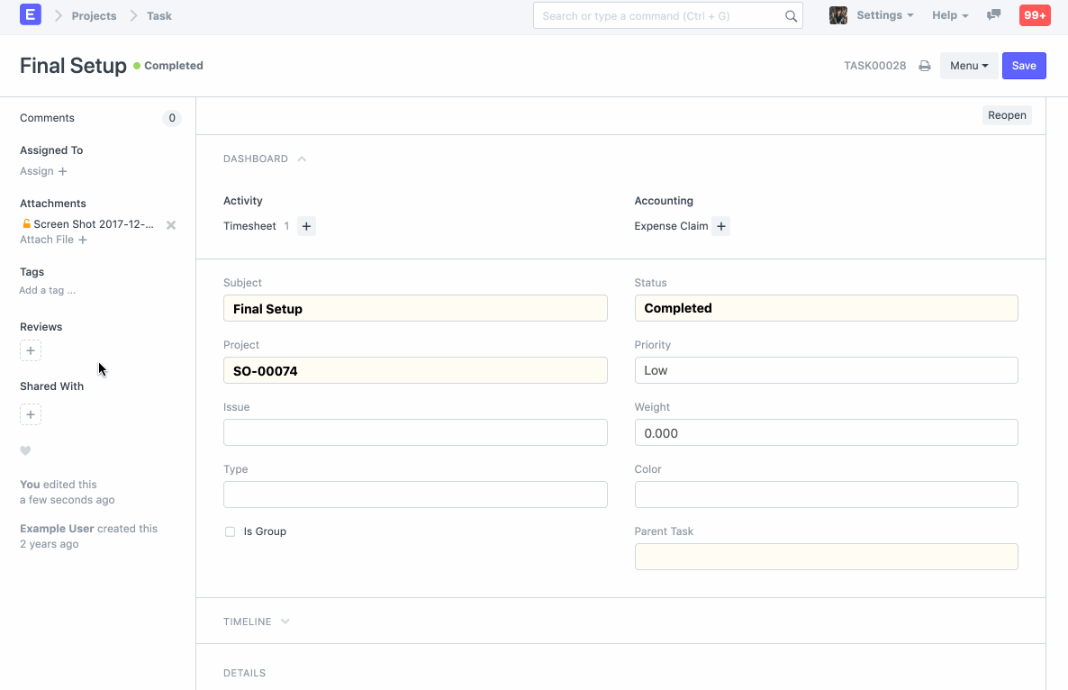 | Tipo de documento de referencia | Tipo de documento al que desea aplicar la regla, por ejemplo: tarea, tarea pendiente, problema, etc. |