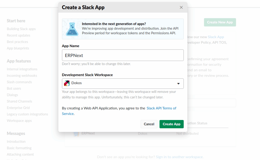 Para generar URL de webhook, debes crear una nueva aplicación de Slack: