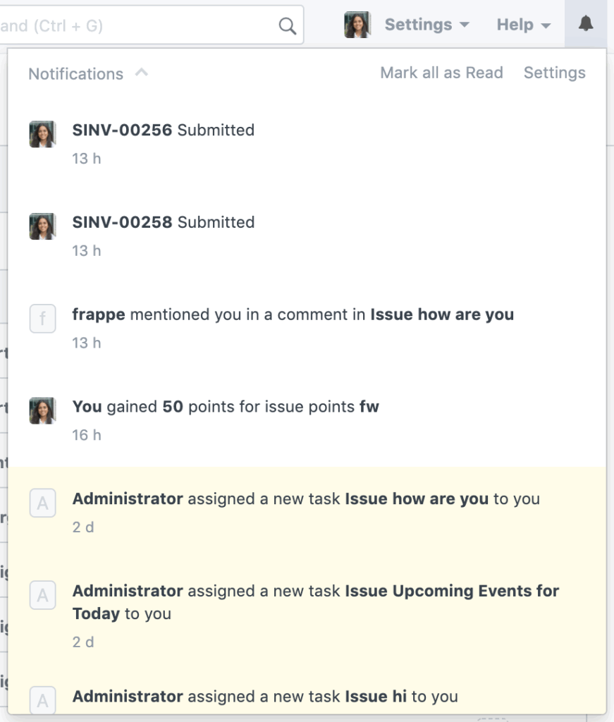 En la versión 12, introdujimos notificaciones del sistema para tareas , menciones , documentos compartidos y puntos de energía . Estas notificaciones aparecen en el menú desplegable de notificaciones, en la esquina superior derecha de la barra de navegación.