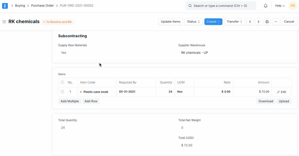 En la subcontratación, el usuario debe transferir materia prima al proveedor subcontratado para obtener el producto terminado. Si la materia prima no está disponible en stock, con esta función, el usuario puede transferir el artículo alternativo de la materia prima subcontratada al proveedor. Esto se realiza en la Entrada de Stock.