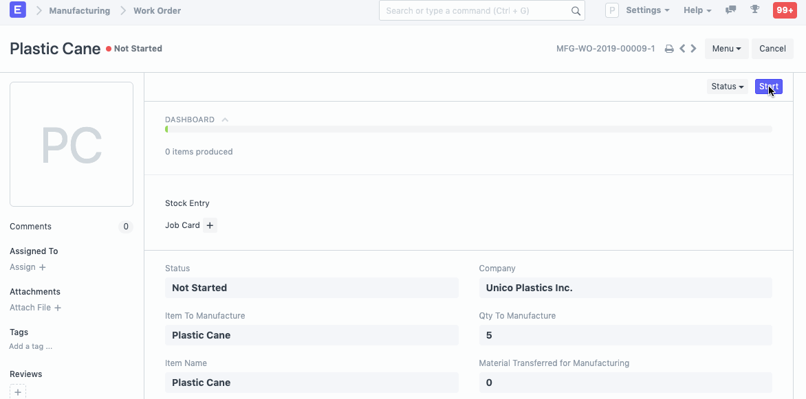 Posteriormente al crear un Recibo de Compra a partir de la Orden de Trabajo se mostrará el artículo alternativo.