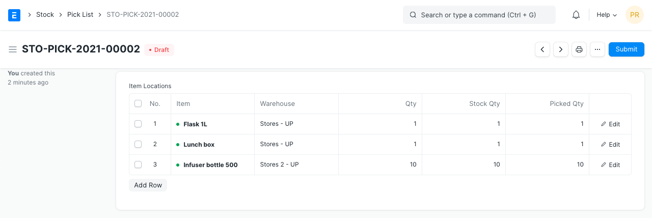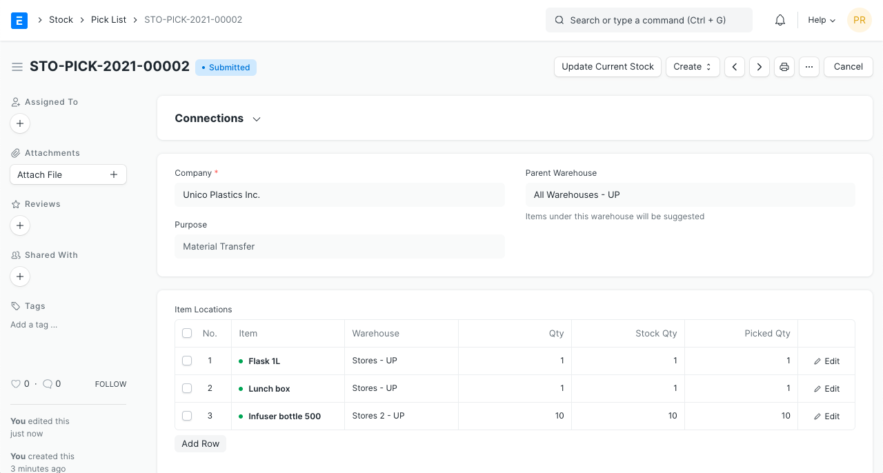- Envíe el documento una vez que se haya realizado la selección de stock y las cantidades de artículos seleccionados se hayan actualizado en el documento.