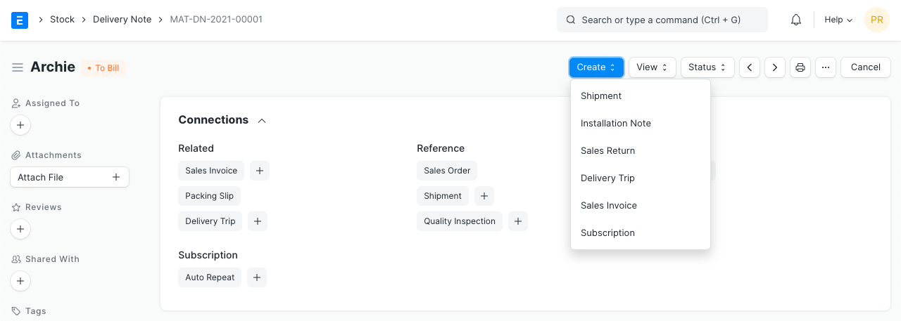 Una vez que haya entregado un pedido de venta mediante una nota de entrega, puede crear una entrada de devolución en caso de que el cliente devuelva el artículo. Para obtener más información, visite la página de Devoluciones de Ventas .