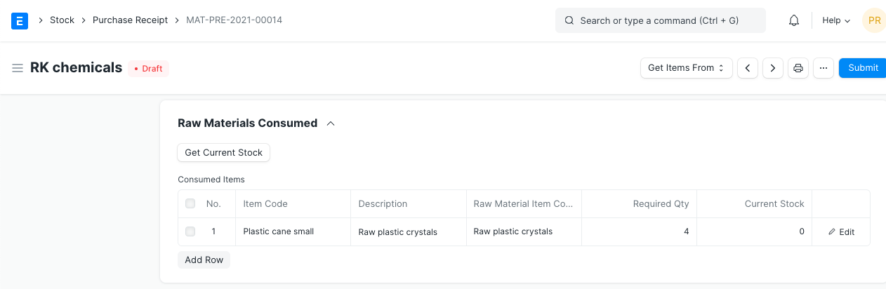 - El botón Obtener stock actual obtendrá el stock actual de los artículos consumidos del almacén del proveedor.