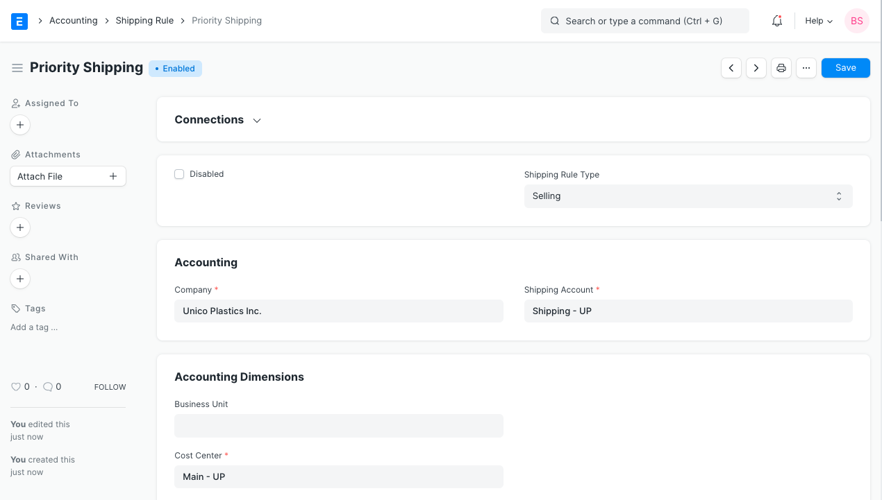 Utilizando la regla de envío puedes definir el costo de entrega del producto al cliente o al proveedor.